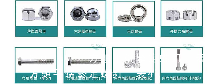 1、Flat:平頭 (鎖入后,頂部與工作件齊平)2、Oval:色拉頭、O頭、半沉頭 3、Round:圓頭 4、Pan:圓扁頭 5、Truss:大圓扁頭 6、Hex:六角頭 A-5:Finish Code/外觀處理。公制自攻螺絲 :于品名后方直接標示 Tapp 不銹鋼螺絲產品主要有:外六角螺栓、圓柱頭內六角螺釘(杯頭)、內六角凹端緊定螺釘(凹端機米)、內六角平端緊定螺釘(平端機米)、內六角尖端緊定螺釘(尖端機米)、內六角柱端緊定螺釘(柱端機米)、沉頭內六角螺釘(平杯)