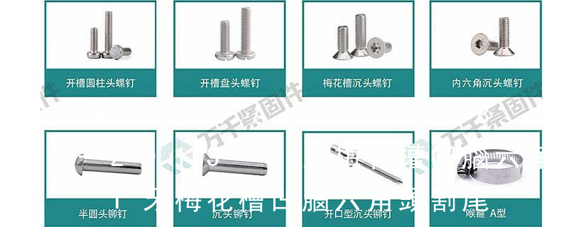 主要分類包括普通螺絲、機(jī)螺絲、自攻螺絲和膨脹螺絲三種。有頭螺釘Cap screw 過去限于全牙的扣件。六角頭螺釘Hex cap screw與大六角螺栓Hex bolt 顧名思義為頭部為六角型的外螺紋扣件,設(shè)計(jì)為使用扳手轉(zhuǎn)動。依照ASME B18.2. Phill 十字槽Serra-tion 墊下帶花Flower Head 開花頭6-bobes recess 內(nèi)梅花Piston bolt 活塞螺釘Winding bolt 線圈螺釘Hexagon head bolts-full thread 六角頭螺栓 全螺紋Carriage bolt 馬車螺栓Square head bolt-product grade C 方頭
