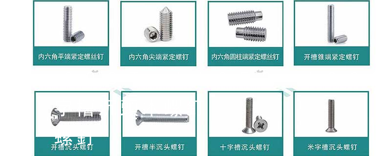 木螺釘有十字槽沉頭、十字槽半沉頭、十字槽圓頭、開槽(一字槽)沉頭、開槽半沉頭、開槽圓頭、六角頭等幾種,公稱直徑有1.6、2、2.5、3、3.5、4、5、6、7、8、10等系列,長度有6、8、10、12、16、20、25、